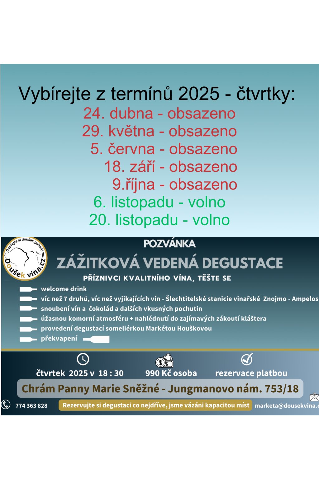 Rezervujte si degustaci co nejdříve, jsme vázáni kapacitou míst.