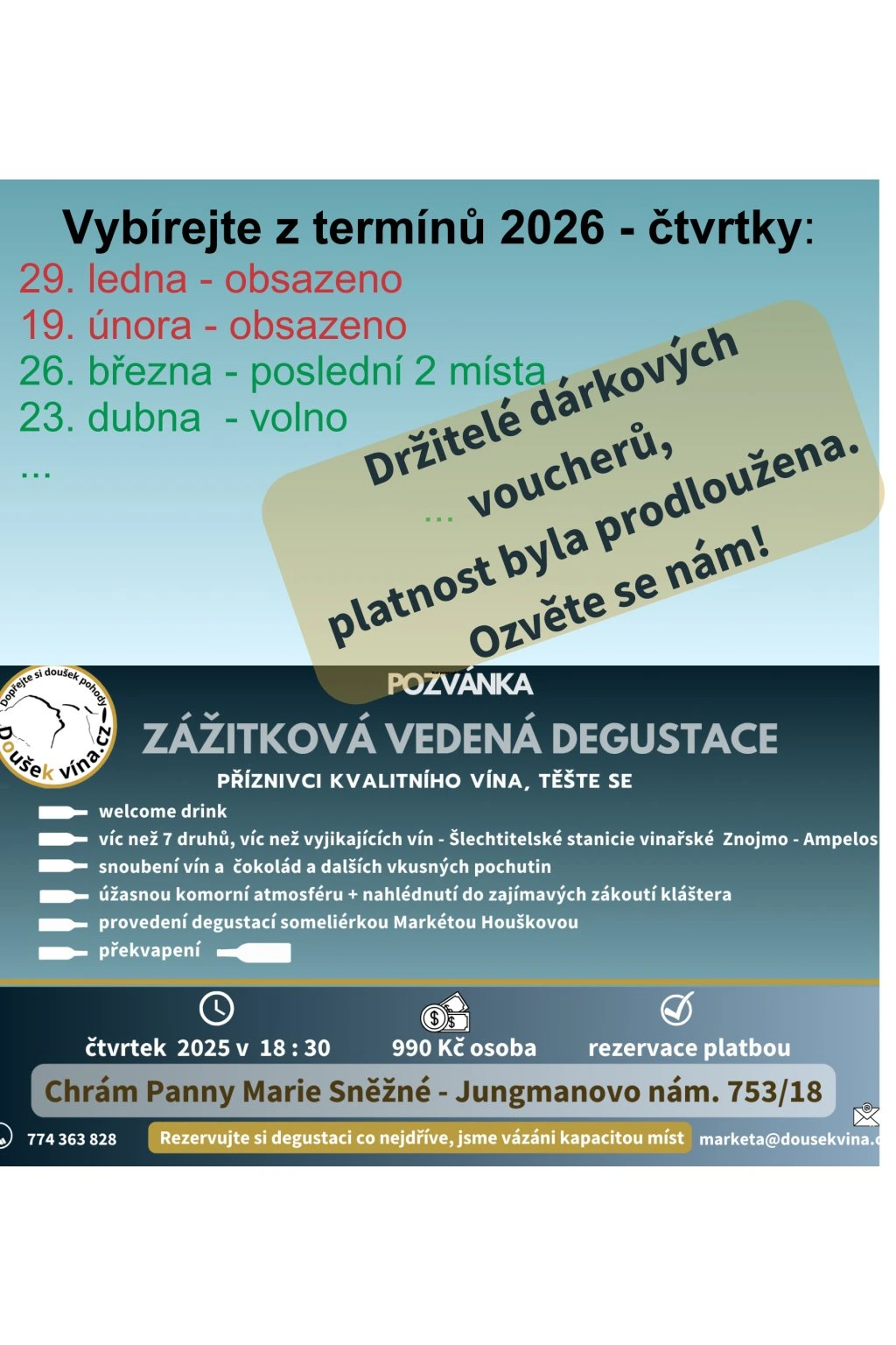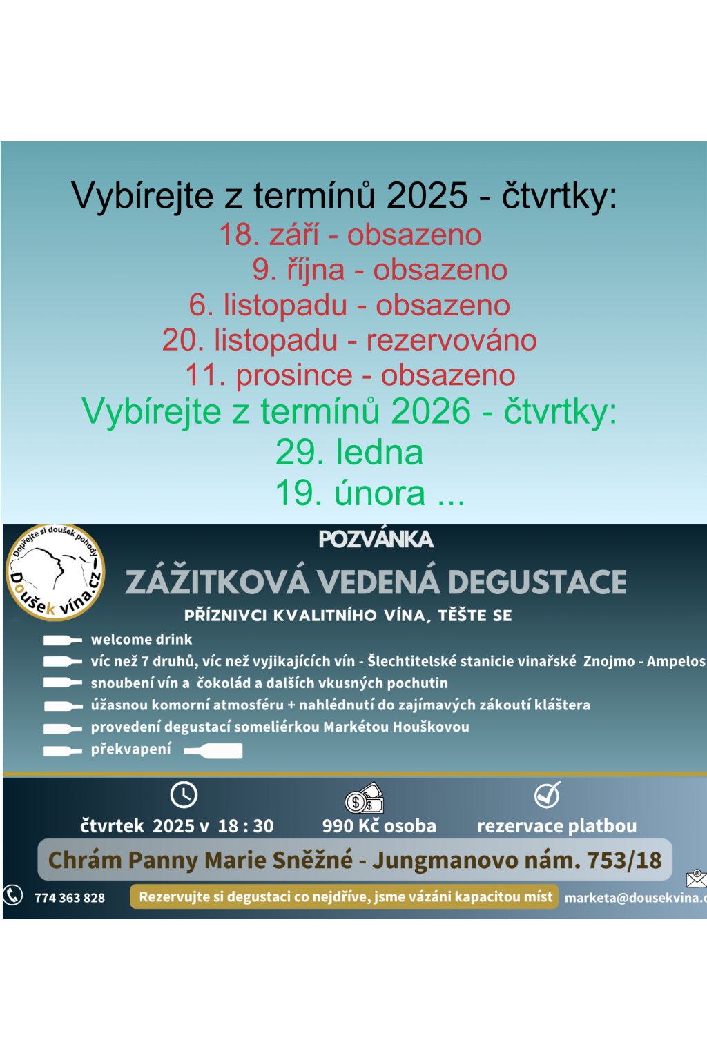 Rezervujte si degustaci co nejdříve, jsme vázáni kapacitou míst.